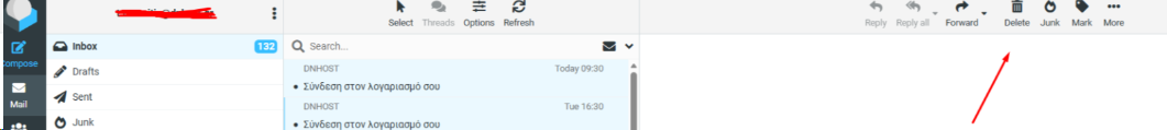 Οδηγίες διαγραφής των email μέσω webmail