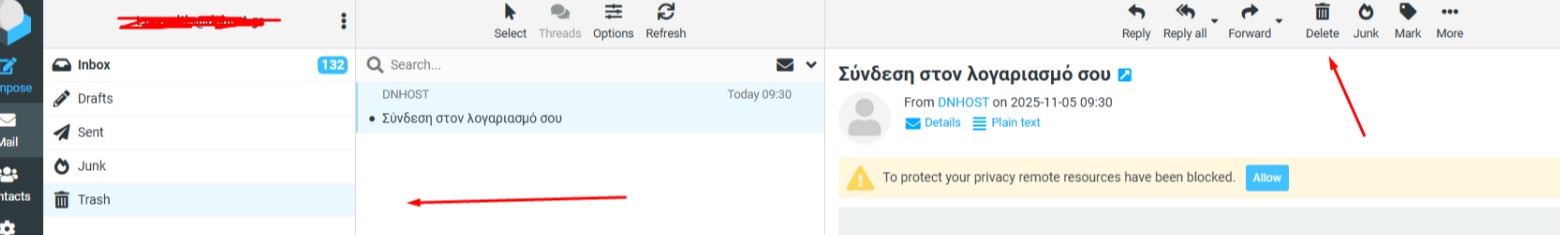 Παρακάτω θα βρείτε τις οδηγίες ώστε να διαγράψετε emails: